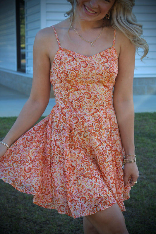 SLEEVELESS MINI DRESS W/ LACE UP DETAIL AT BACK: ORANGE