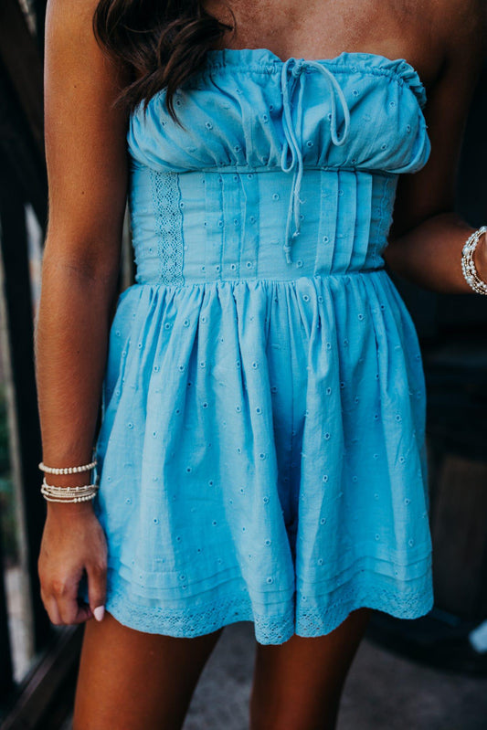 Eyelet Strapless Smocked Back Layered Lace Romper