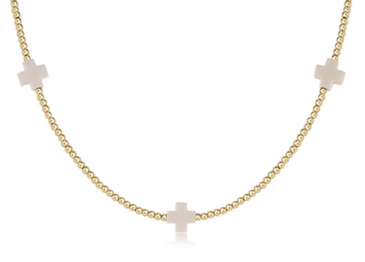 15" Choker Signature Cross Gold Pattern 2mm Bead - Off-White