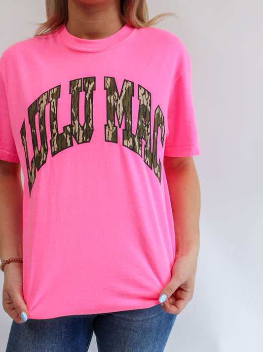 Lulu Mac Mossy Oak Bottomland Adult Neon Pink Comfort Colors Mossy Oak Tee