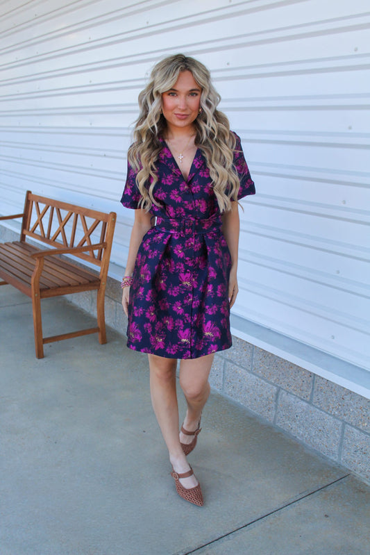 Pink Blossoms Jacquard Mini Dress
