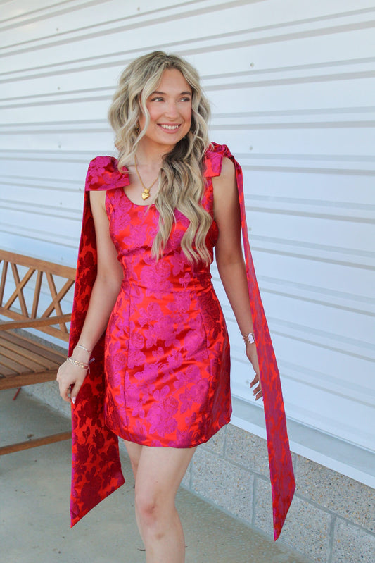 Urania Bow Shift Mini Dress in Red