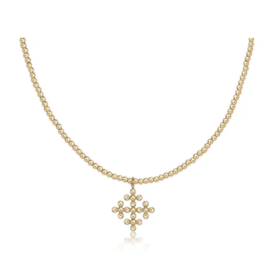 17" Choker Classic Gold 2mm Bead - Classic Beaded Signature Cross Encompass Gold Charm