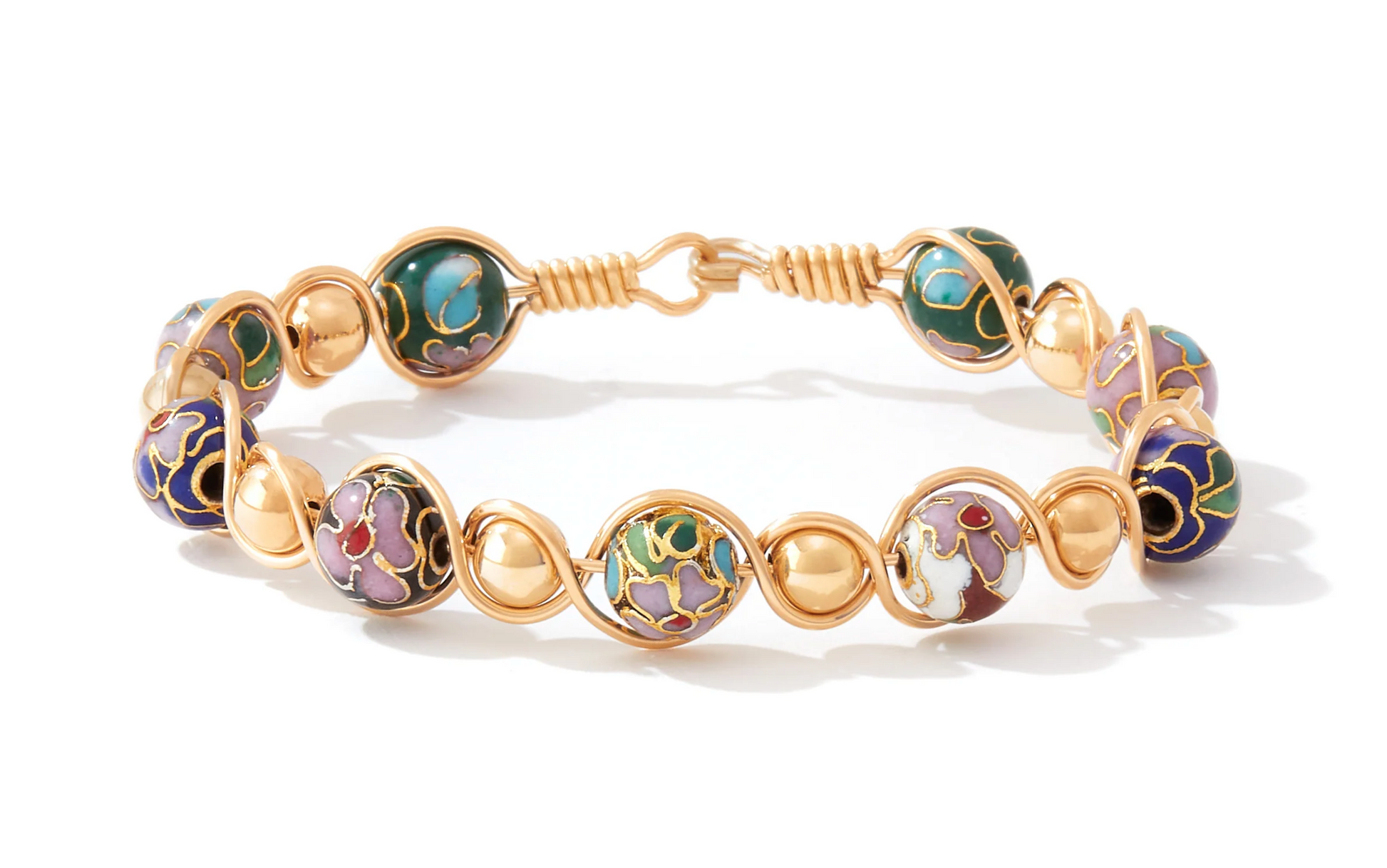Introducing the Cloisonne Bracelet, the perfect accessory for those who appreciate unique and playful jewelry. Made with intricate cloisonne design, this bracelet is sure to make a statement. Available in M/L and measuring 7.75 inches, it's the perfect fit for any wrist. Make a statement with the Cloisonne Bracelet today!