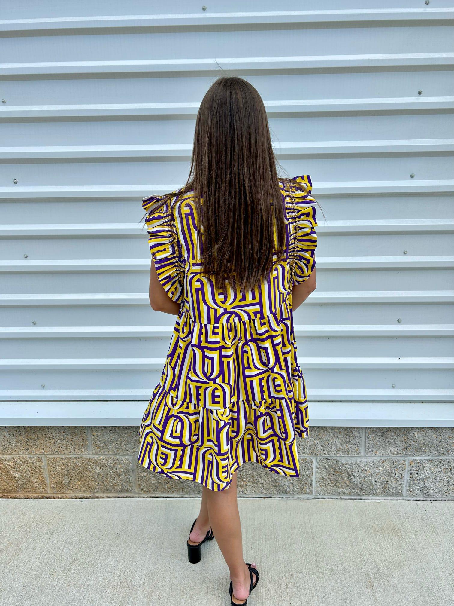 Get ready to cheer in style with the Gameday Dress Everly Touchdown in vibrant purple and gold! This playful dress brings team spirit to the forefront, perfect for showing off your colors at every game. Comfortable and fun, it’s designed to keep you looking fabulous while you celebrate every touchdown. Whether you're in the stands or at the tailgate, this dress is your new go-to for game day excitement.