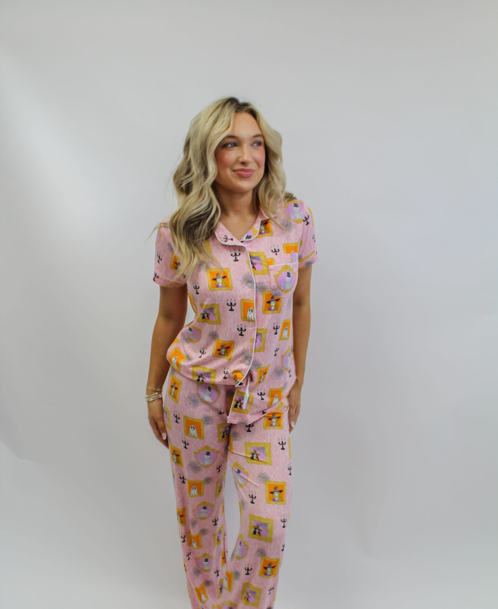 Gilded Ghouls Short Sleeve Button Up Sleep Shirt