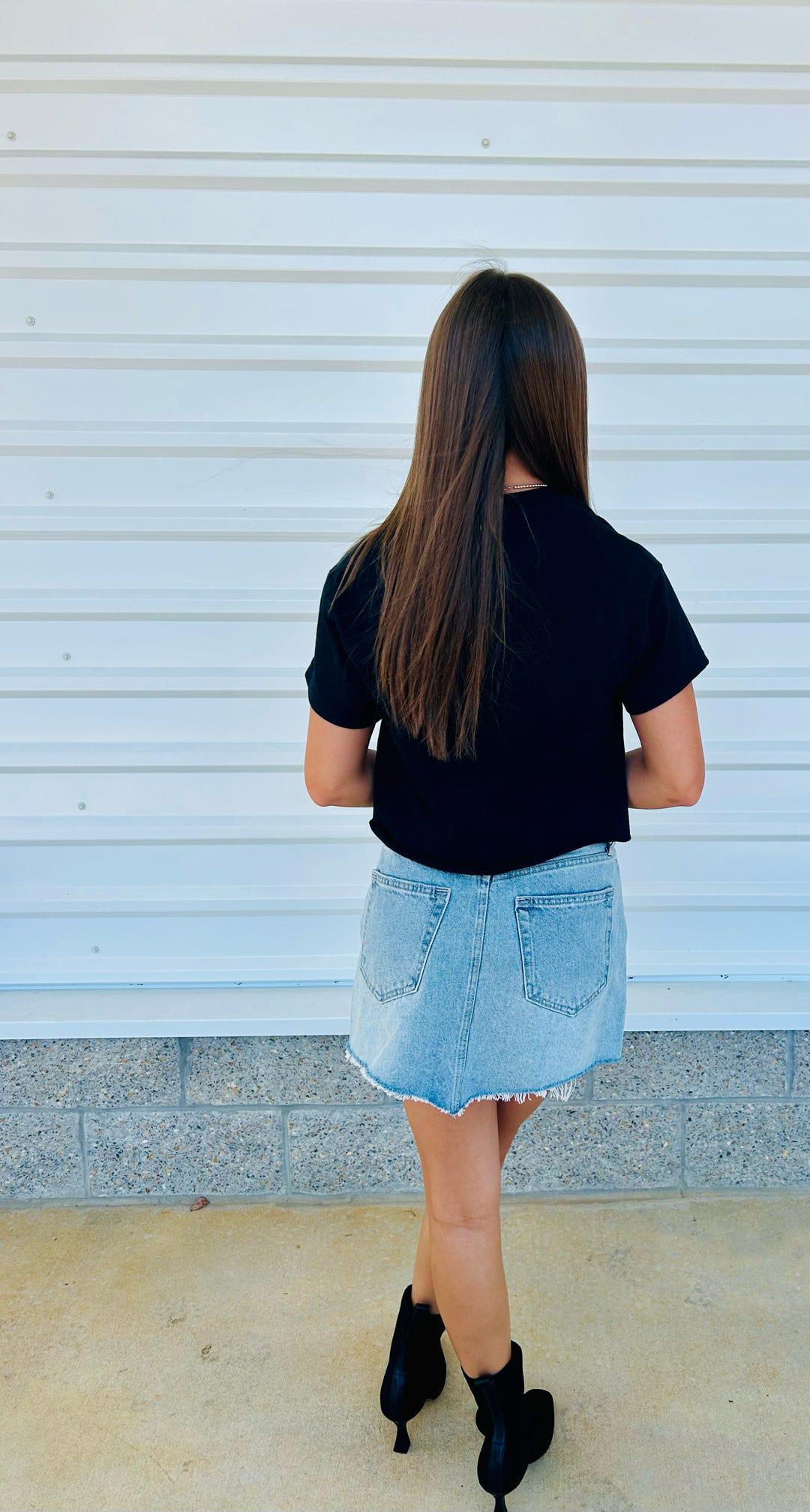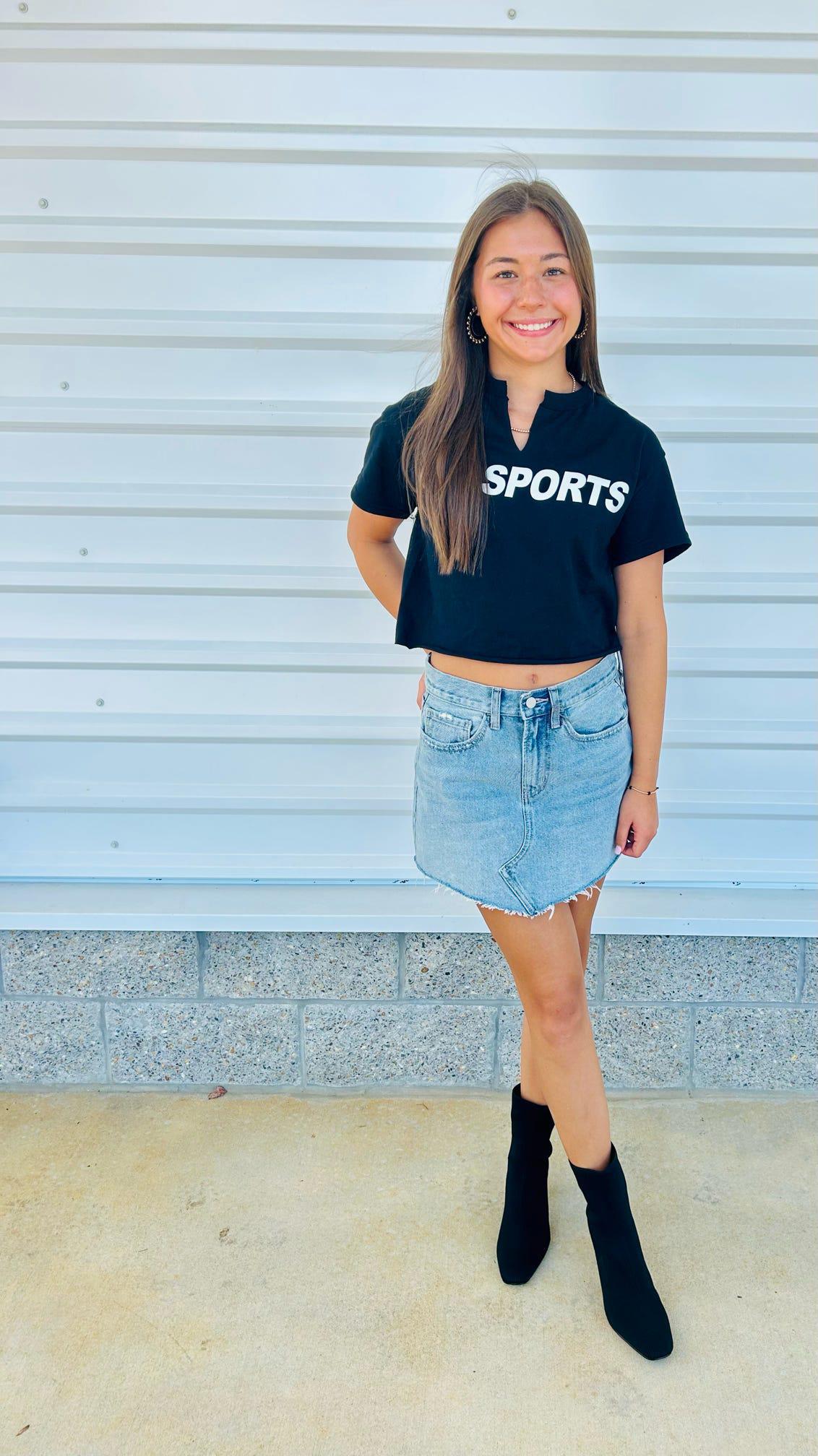 GO SPORTS!! Cute edgy t-shirt to support your favorite team! 100% Cotton Black T-Shirt COMES CROPPED WITH V SLIT