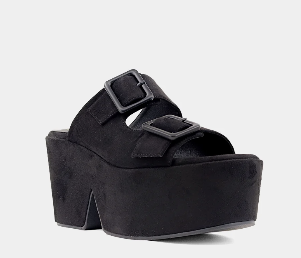 Step into style (and comfort) with the Graceland Wedge. These black wedges feature two buckle accents for a touch of edginess. Perfect for any outfit, these shoes will elevate your wardrobe (literally and figuratively).