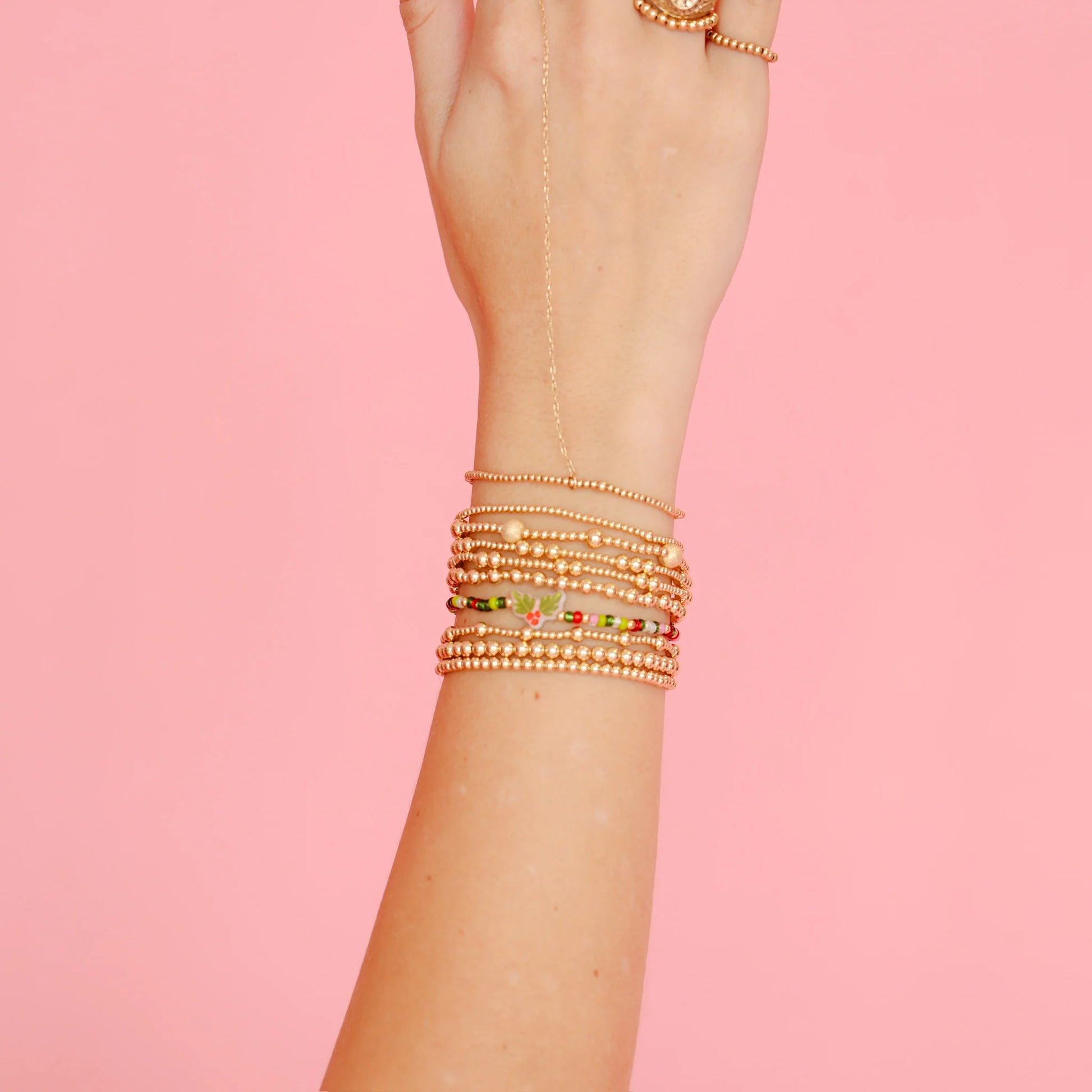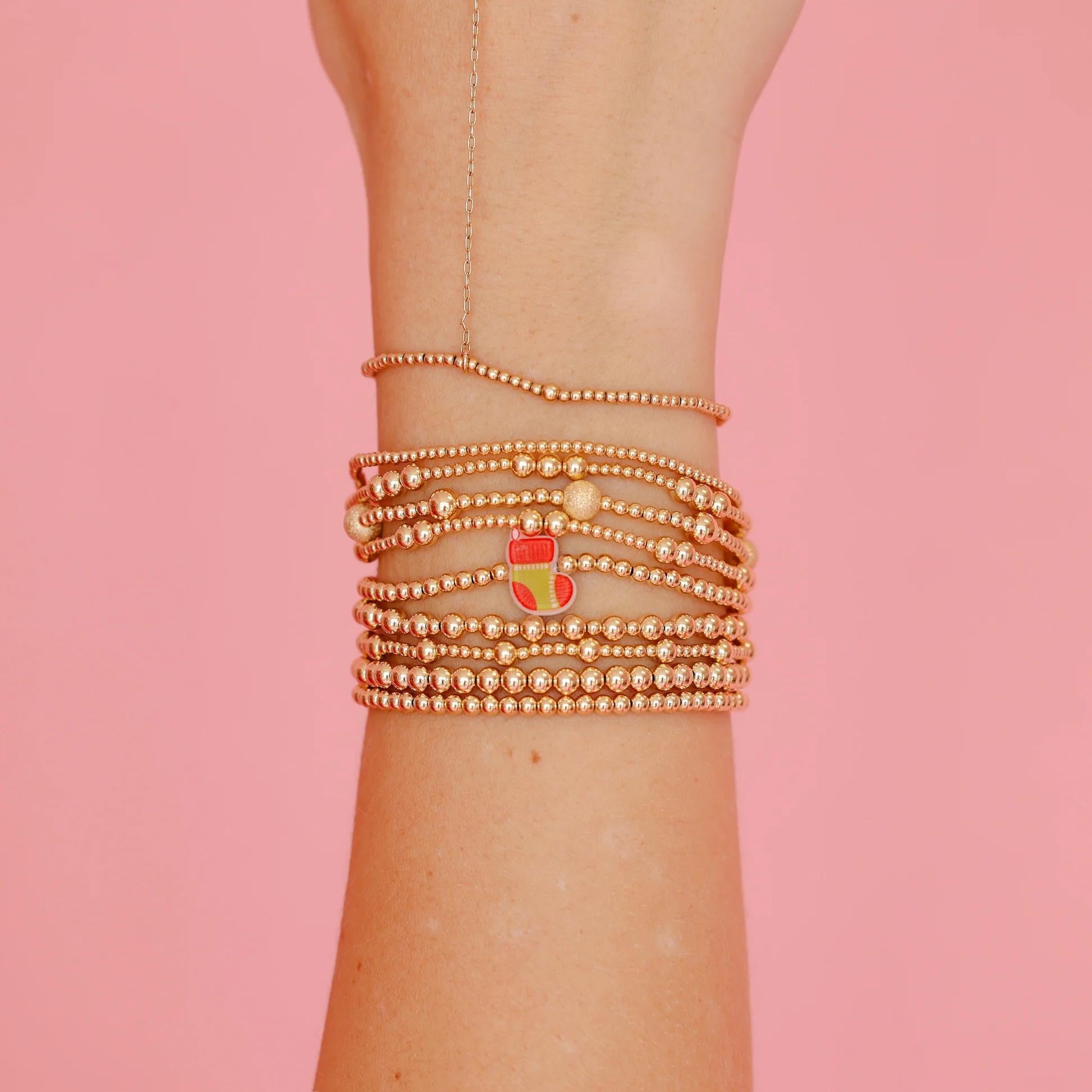 The sprinkle is a mix of 2.5mm & czech glass beads. The pattern varies on each bracelet making it unique. An acrylic bead that will not fade.