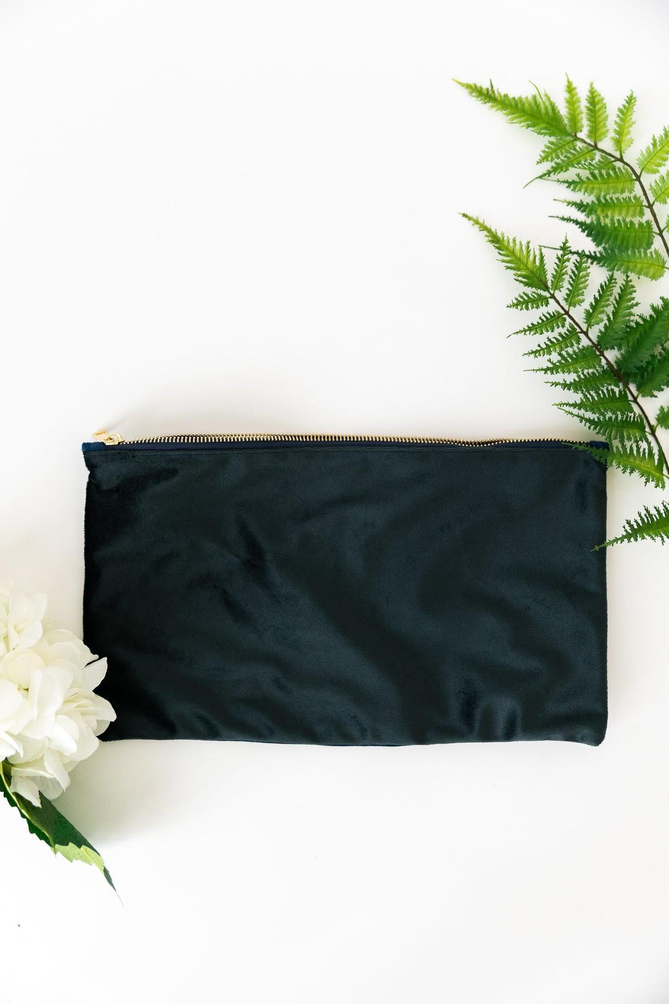 - Velvet tile bag measures 14" X 8"