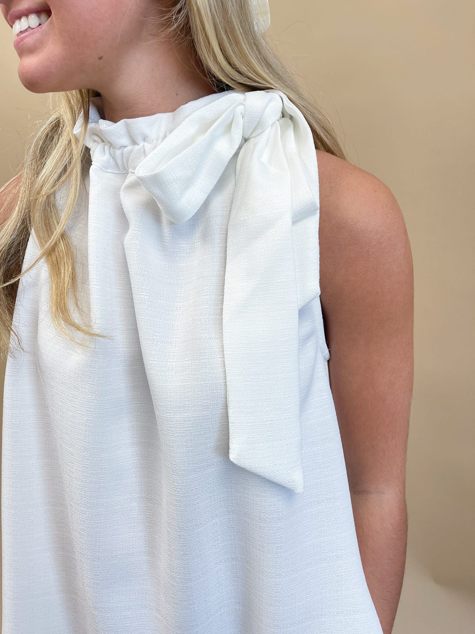 PURE CLASS! This crisp white with the soft tie shoulder detail is giving bridal brunch, beach dinner, graduation, coastal church Sunday- all the things.