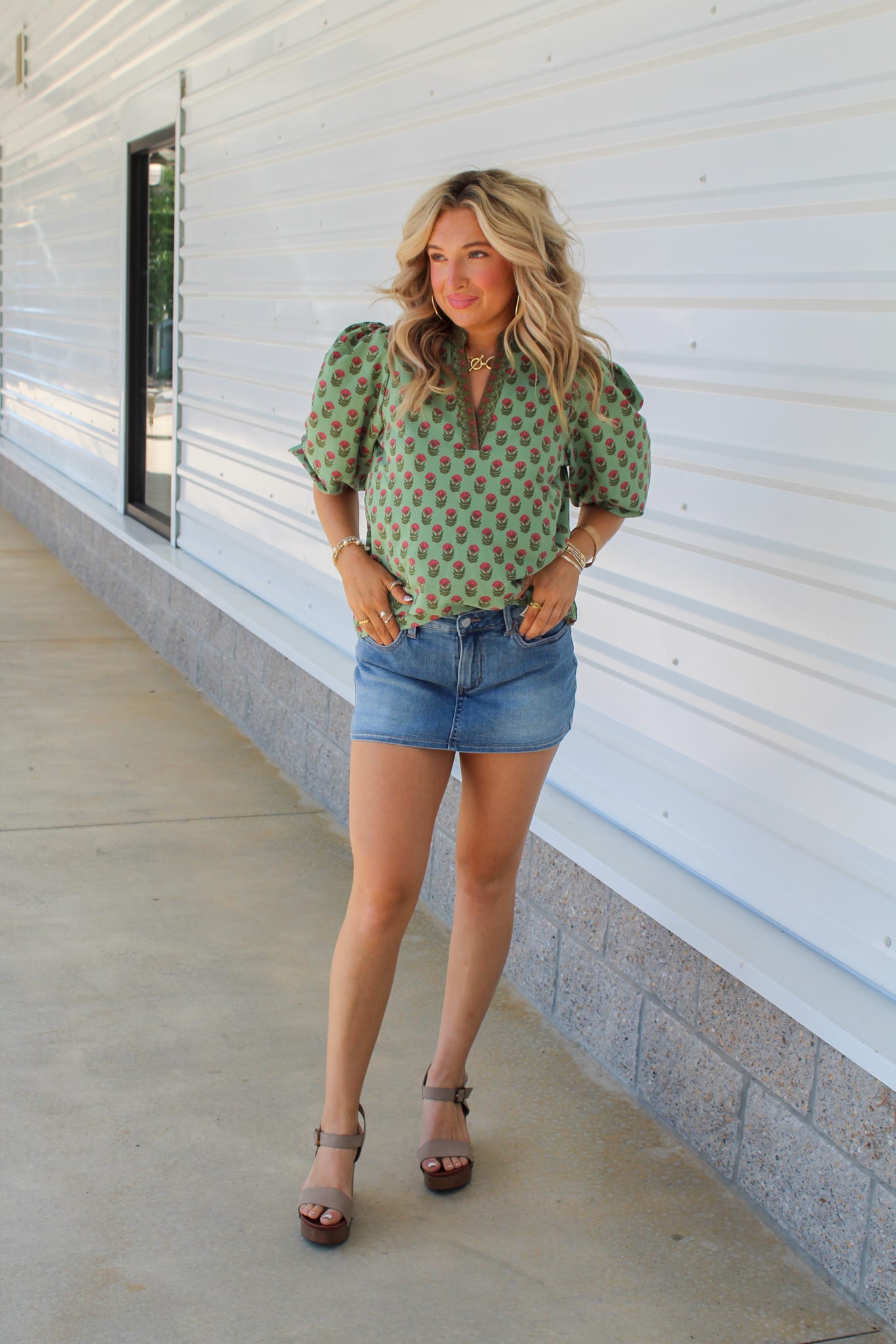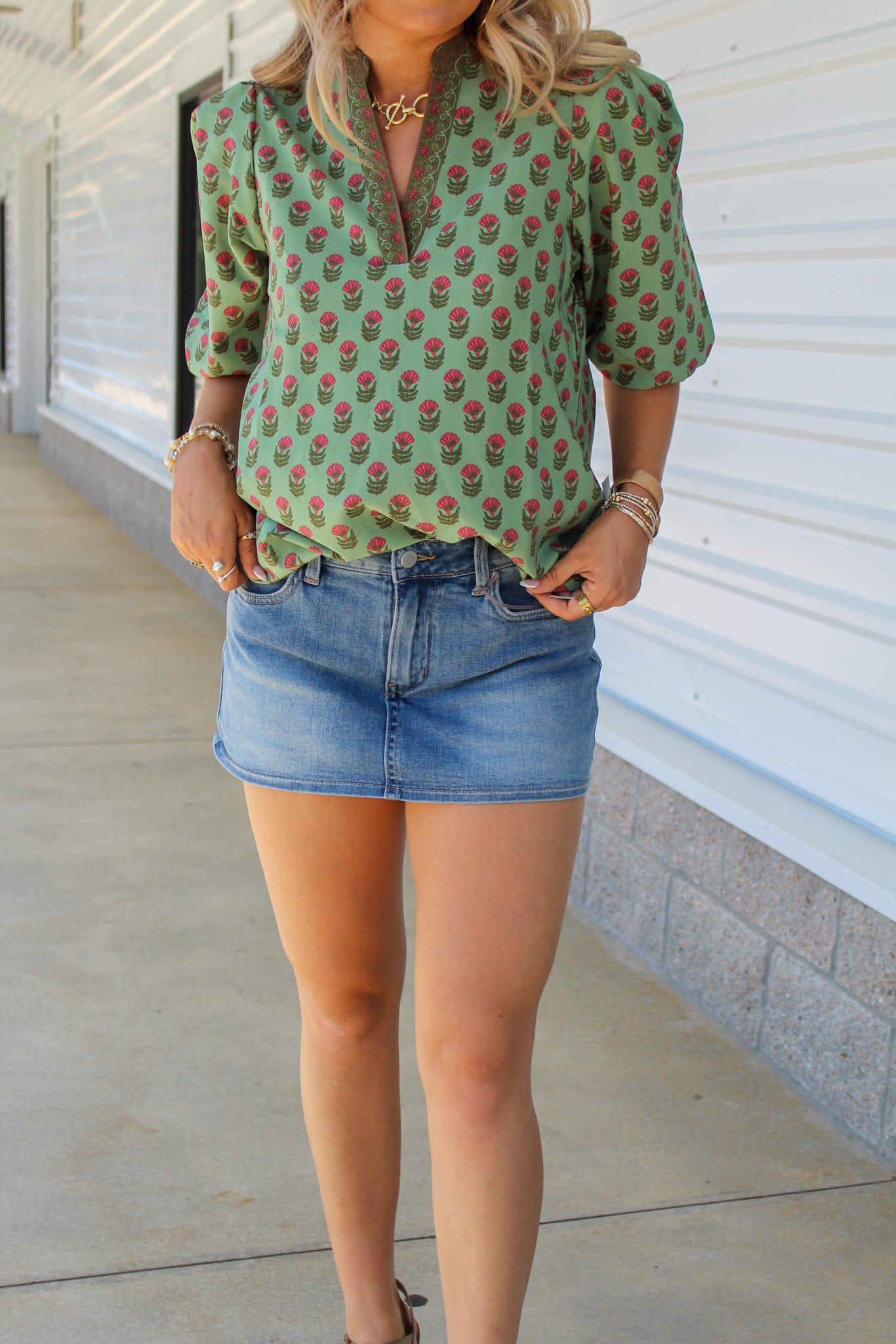 Add a touch of whimsy to your wardrobe with the Tamryn Top! This playful top features a unique floral foulard pattern inspired by lush vineyards. Perfect for those who don't take themselves too seriously, this top will surely make a statement while keeping you comfortable and stylish.