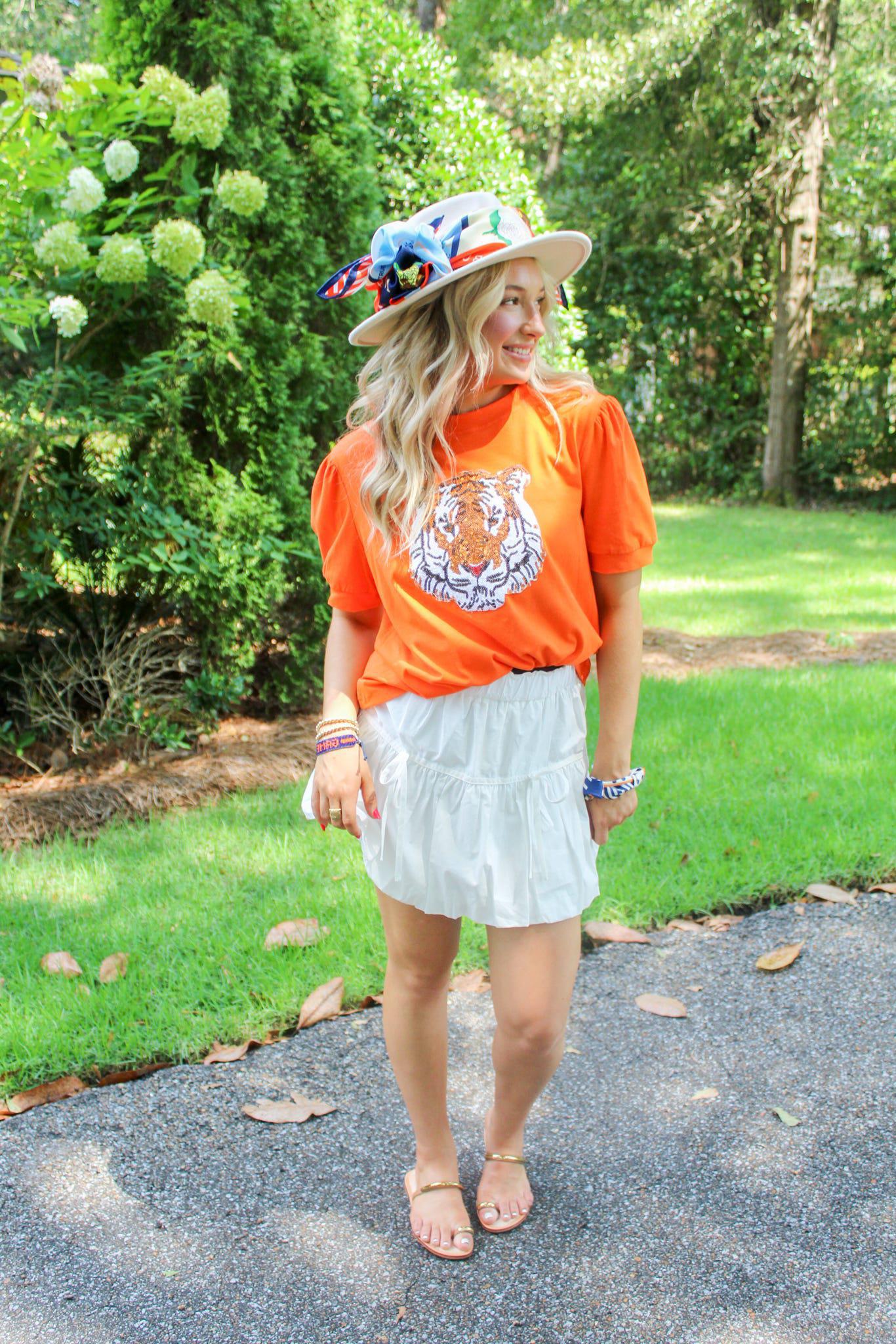 Get ready to shine on game day with this playful Tiger Sequin Casual Tee! Sparkling sequins bring fun and flair to your casual look, making it perfect for cheering on your team or adding a touch of sparkle to everyday wear. Comfortable and eye-catching, this tee lets you show your tiger spirit with style and ease.